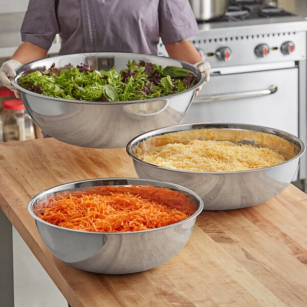 From whipping up a quick vinaigrette to mixing a large batch of pastry dough, there is a bowl size for it all. When you're finished using these bowls, they stack with each other for compact storage. Whether you're whisking batter, mixing sauce, whipping cream, or tossing salad, this bowl set provides every size you need for your kitchen!
