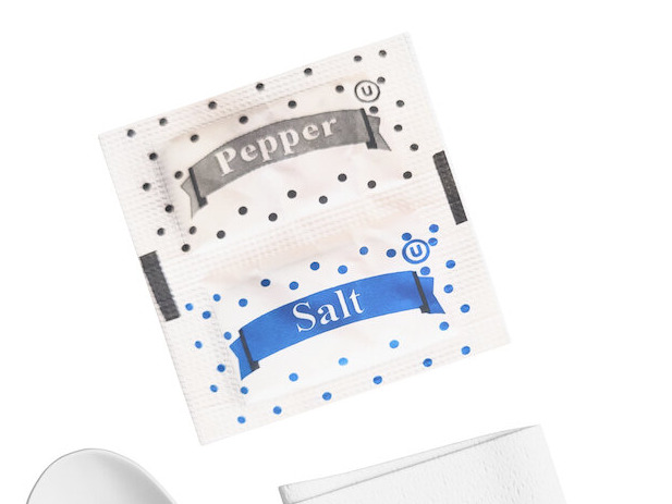 Small packets of salt and pepper are provided so your guests are able to add some extra seasoning to their dishes if so desired.