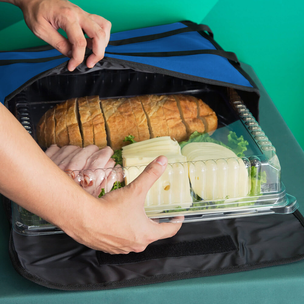 This versatile bag is designed to keep your orders at the desired hot or cold temperature throughout transport or service. A roomy interior compartment is combined with a thick layer of foam that allows for effortless, worry-free carrying of subs, sandwiches, casseroles, pizzas, and even hinged lid take out containers from your kitchen to your event's location.