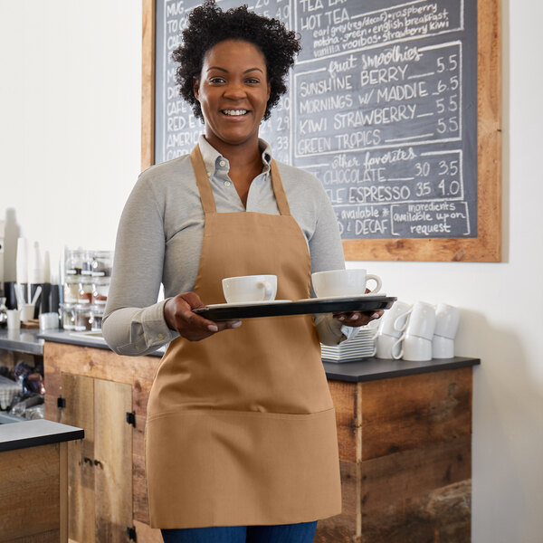 LOVE these aprons. As a short woman (5 foot tall), this is MUCH-appreciated. Fits perfectly, and finally have an apron that doesn't look like a robe on me! Also very comfortable around the neck, and LOVE the pockets. A must!