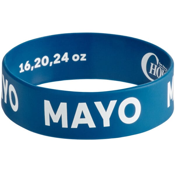 This label band fits 16, 20, and 24 oz. standard and wide mouth bottles and has "Mayo" clearly printed to communicate to your kitchen staff what condiment or ingredient is inside. By adding these convenient identification labels to your workflow, you'll save time searching for the right ingredients, reduce errors, and keep customers happy!