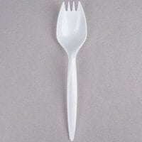 Made of durable polypropylene, these disposable sporks are strong enough to last through your meal service. Plus, cleanup is a breeze! Use them for breakfast, lunch, dinner, or desserts to conveniently eliminate any warewashing needs and free up your staff to handle other important tasks.