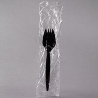 Sporks are a great utensil to serve a variety of different food types and this black plastic spork comes in 100-pack. For a slightly increased cost, you can also get this same spork in an individual wrapping.Brandon G. from Dig & Serve on 10/21/2017