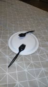 Nice spork, convenient silverware. Also is ecofriendly because it is a plastic fork and spoon in one thing, eliminating waste. Black coloration is sleek and professional.Stephen B. from New Deli on 04/25/2018