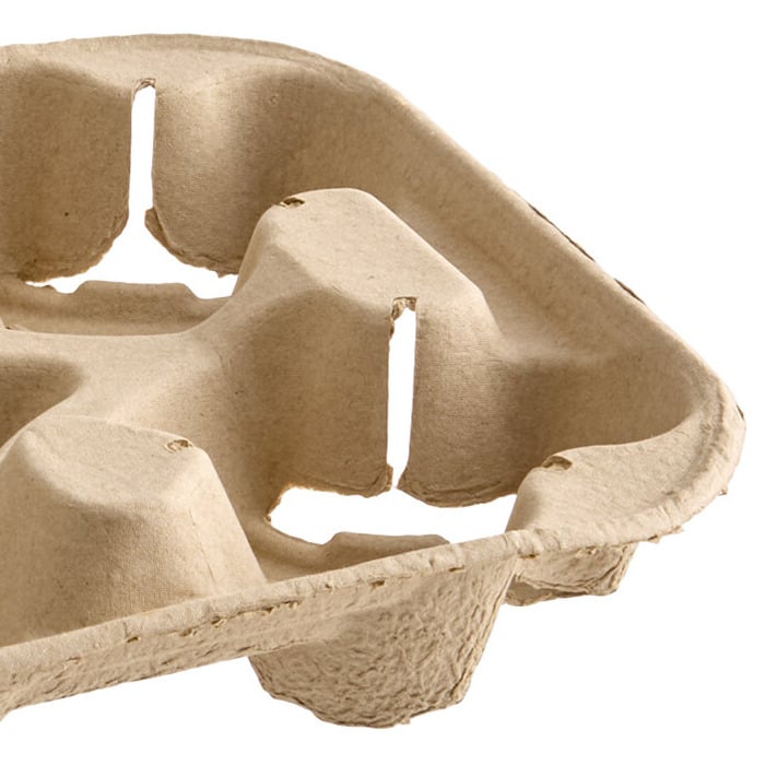 This 2-cup carrier with tray is made from strong molded fiber and 100% recycled material! It's a great way to promote your green values to customers in comparison to foam or plastic alternatives. The strong design has a molded feel and texture that offers an easy grip.