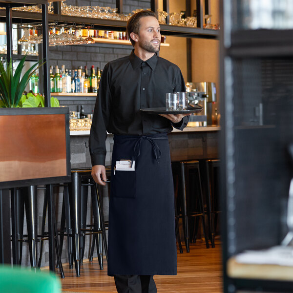It offers a crisp, clean look and will help create a sophisticated appearance in your upscale restaurant or hotel. Its navy blue color adds an extra sense of class and formality. This ensures your front of house staff looks picture perfect while staying on top of customer orders and serving guests.