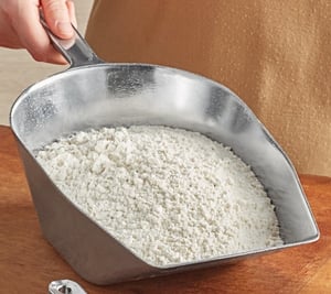 Perfect for scooping generous portions of flour, chocolate chips, popcorn, and other bulk items, this sturdy yet lightweight aluminum scoop easily reaches into buckets and bags of bulk products to make serving or cooking and baking easy.