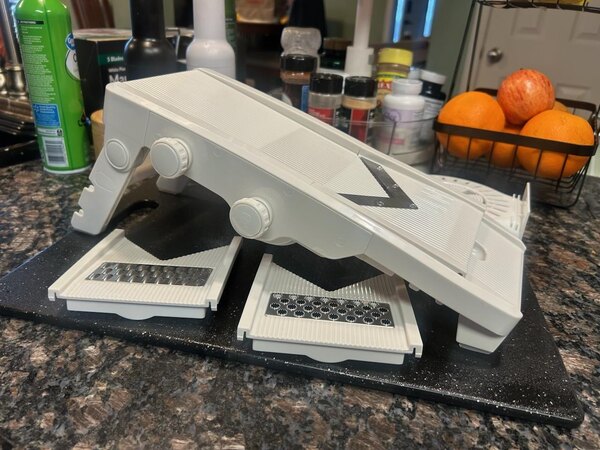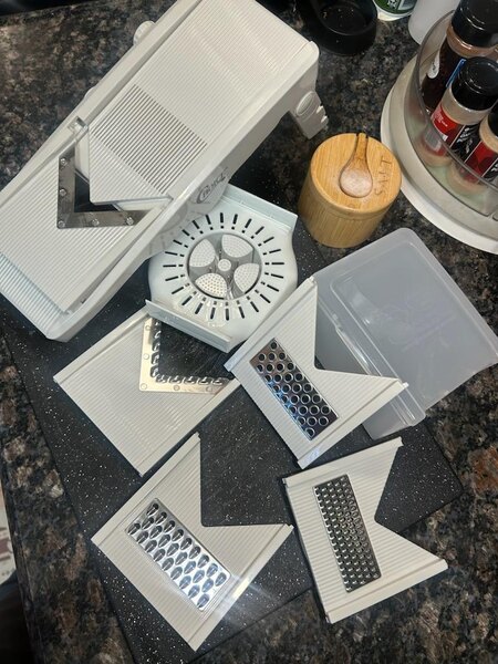 Perfection!!! Slices SAFELY!! Sturdy and we love the accessories!
