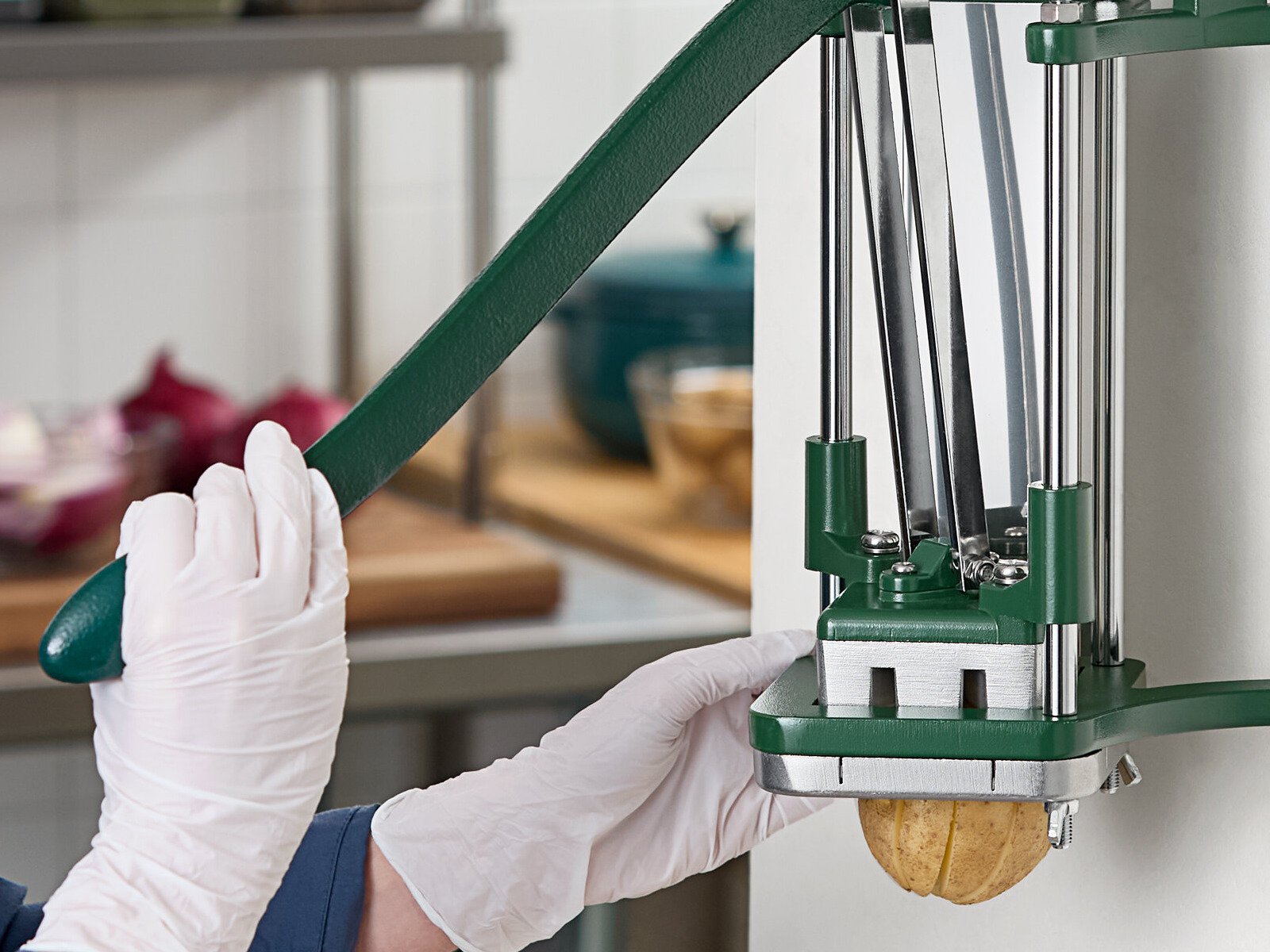 Thank you for your review, Thien! We are sorry you did not like this fry cutter. We recommend trying Vollrath's 47713 3/8" French Fry Cutter for a more durable cutter for your commercial restaurant.