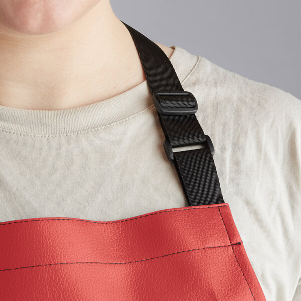 This apron's long length provides your employees with ample coverage, and it comes in a vibrant red color to keep staff looking sleek and uniform. With this dishwashing apron, you'll get the full coverage you desire for many uses to come.