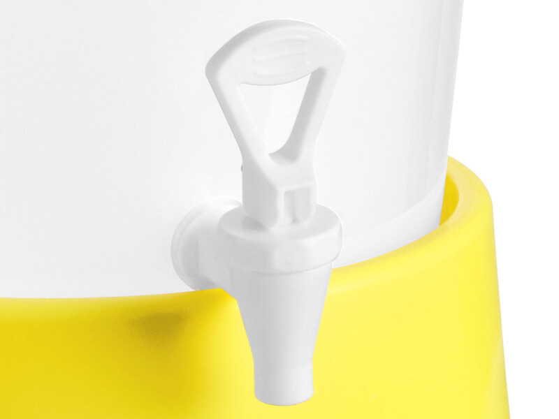 This Choice round 3 gallon translucent beverage dispenser with yellow base is the perfect balance between functionality, durability, and style.