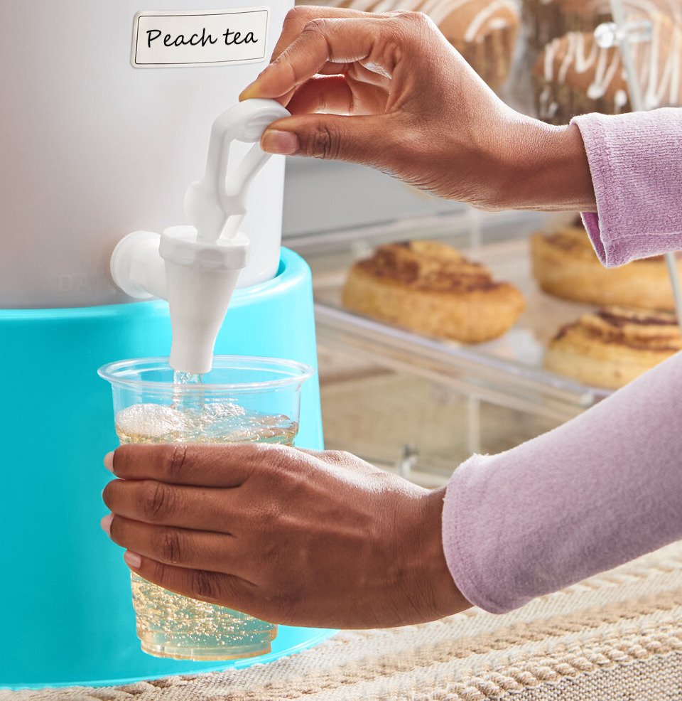 The included decals for iced tea, punch, water, and lemonade aid in identification of your signature drinks.