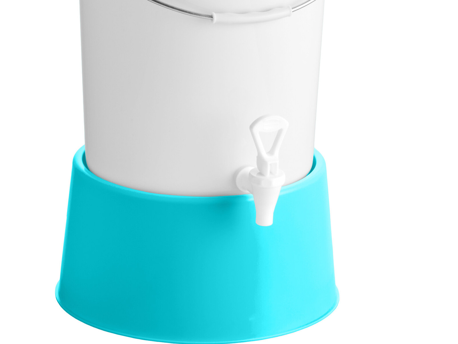 This Choice round 6 gallon white beverage dispenser with blue base is the perfect balance between functionality, durability, and style.