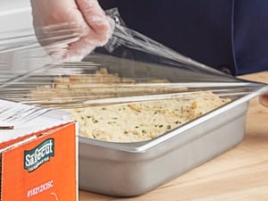 • Film's width is perfect for covering small and medium containers or bulky food items