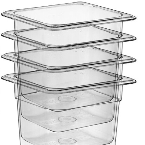 Thanks to the clear material, these food pans offer optimum visibility for quick product identification. Plus, they include capacity indicators molded in the side in both liter and quart measurements so that you can quickly and easily do inventory management and measure out how much you need of any product.