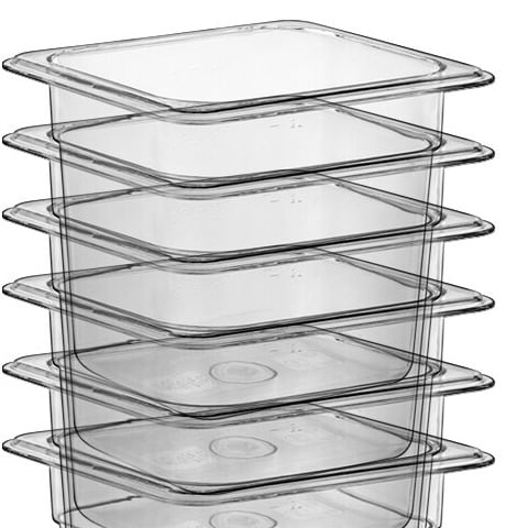 Thanks to the clear material, these food pans offer optimum visibility for quick product identification. Plus, they include capacity indicators molded in the side in both liter and quart measurements so that you can quickly and easily do inventory management and measure out how much you need of any product.
