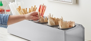 This holder is perfect for back-of-the-house use in restaurants, bars, cafes, and coffee shops. Alternatively, it works well on your buffet line or at other self-service stations. This holder keeps your flatware handy and works to give your patrons the impression of cleanliness and quality.