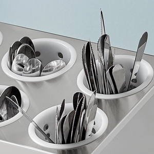 Featuring a durable plastic construction, the 6 flatware cylinders are an essential component to your flatware organizer. Thoroughly perforated, they enable proper draining and ventilation, allowing you to store wet flatware and rely on it air drying before making it available to guests.