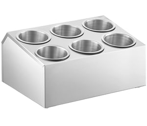 This holder features six openings for holding the six included stainless steel flatware cylinders. Its durable stainless steel construction guarantees years of dependable use while providing an easy-to-clean, corrosion-resistant storage solution. Plus, its sturdy, compact construction saves valuable countertop space, while rolled edges provide additional durability and safety.