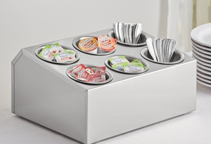 This holder's compact construction maximizes counter space, which is ideal for restaurants, catered events, and self-serve stations. The compact yet versatile design provides your patrons with easy access to flatware and condiments without sacrificing space and aesthetic appeal. Store, display, and transport flatware with ease!