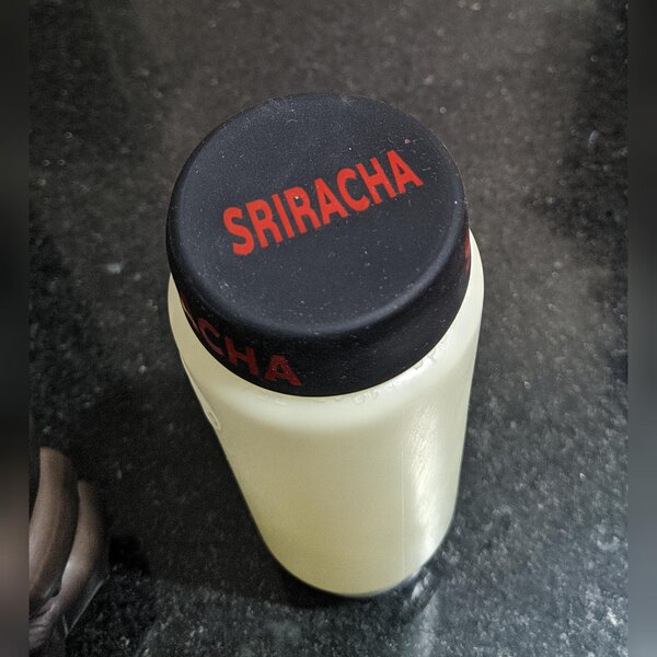 "Sriracha" is clearly printed to communicate to your kitchen staff what condiment or ingredient is inside. By adding these convenient identification labels to your workflow, you'll save time searching for the right ingredients, reduce errors, and keep customers happy!