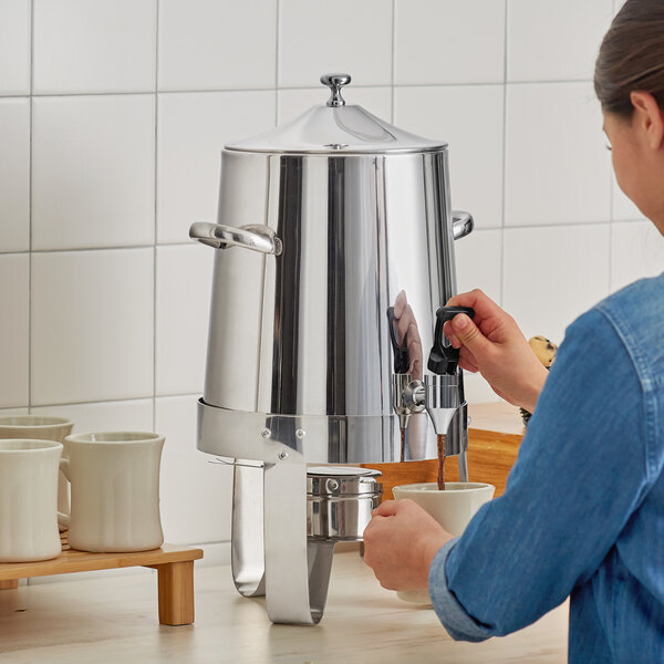 Made of 18/10 stainless steel, this coffee chafer urn is built to last in any commercial setting. Not only does it boast an elegant appearance, its material also makes it great for distributing and holding heat, ensuring your beverages stay warm throughout the length of your event.