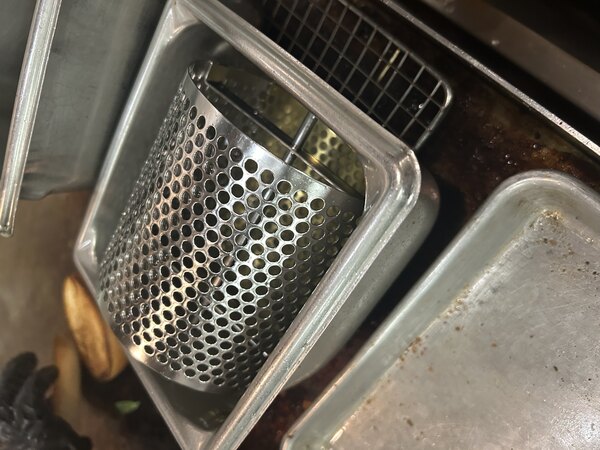 Works well! Easy to use. It spins very easily. Has legs on the bottom so it doesn’t sit flat on grill top. Holds a good amount of butter to get through your whole day without refilling. It is also very sturdy and sits level.