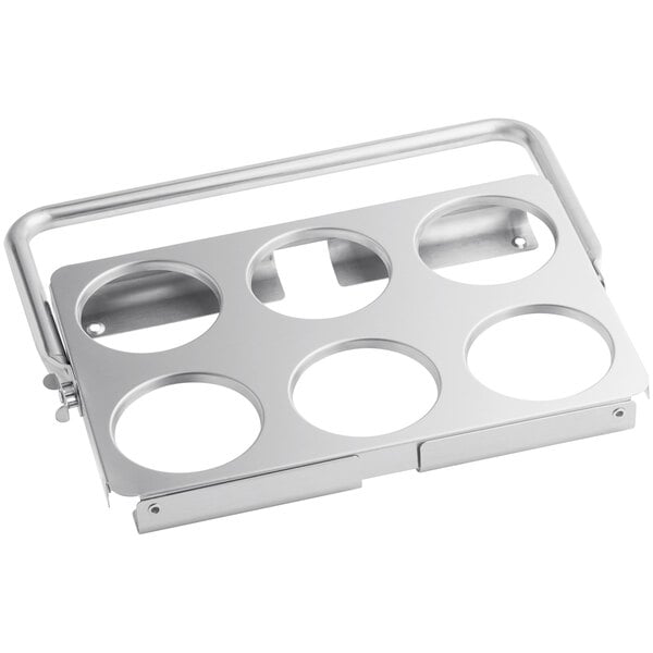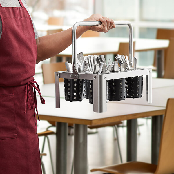 Streamline your food service operations with this Choice stainless steel flatware carrier with 6 black perforated cylinders.