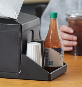 This compact unit has a minimal footprint on tabletops, ensuring that your guests have ample room to enjoy their meals. It also provides your guests with a clean, well-organized display that will cast your establishment in a positive light.