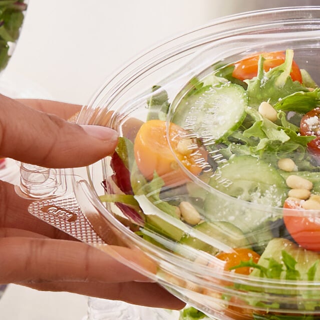 To use the safety seal, simply package your prepared foods and firmly press the hinged lid down. Once closed, the bowl cannot be opened without breaking the safety seal. This prevents tampering and assures customers that the contents are fresh and protected from contamination.