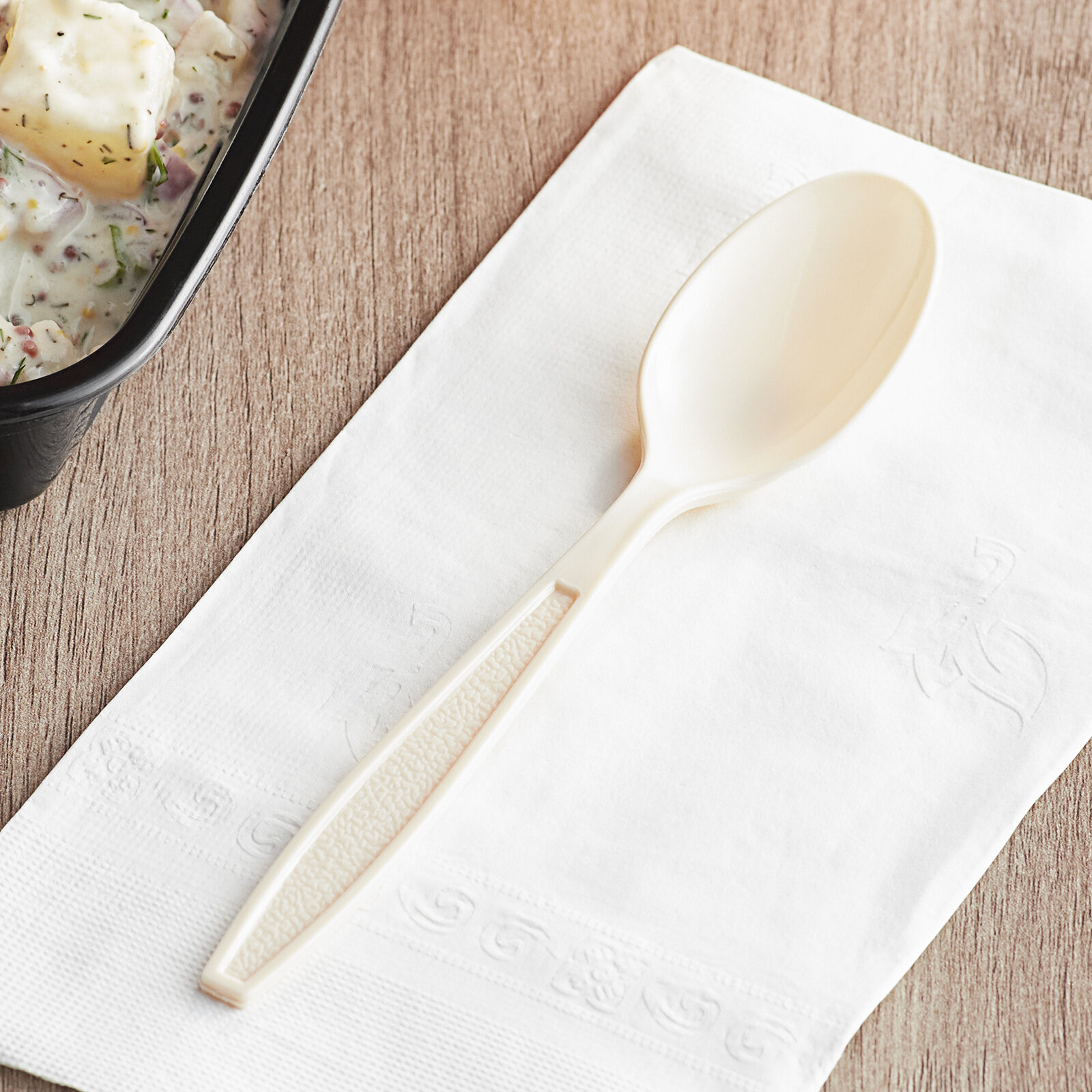 This spoon is perfect for your take-out restaurant, cookout, party, gathering, or other catering event. Use it to fill your flatware bins at your snack shack or concession stand or to complete your polystyrene plastic cutlery setting. The beige color is complementary to virtually any dining environment and can be dressed up or down according to the atmosphere of your event. This disposable teaspoon is extremely versatile and great for use with coffee or tea.