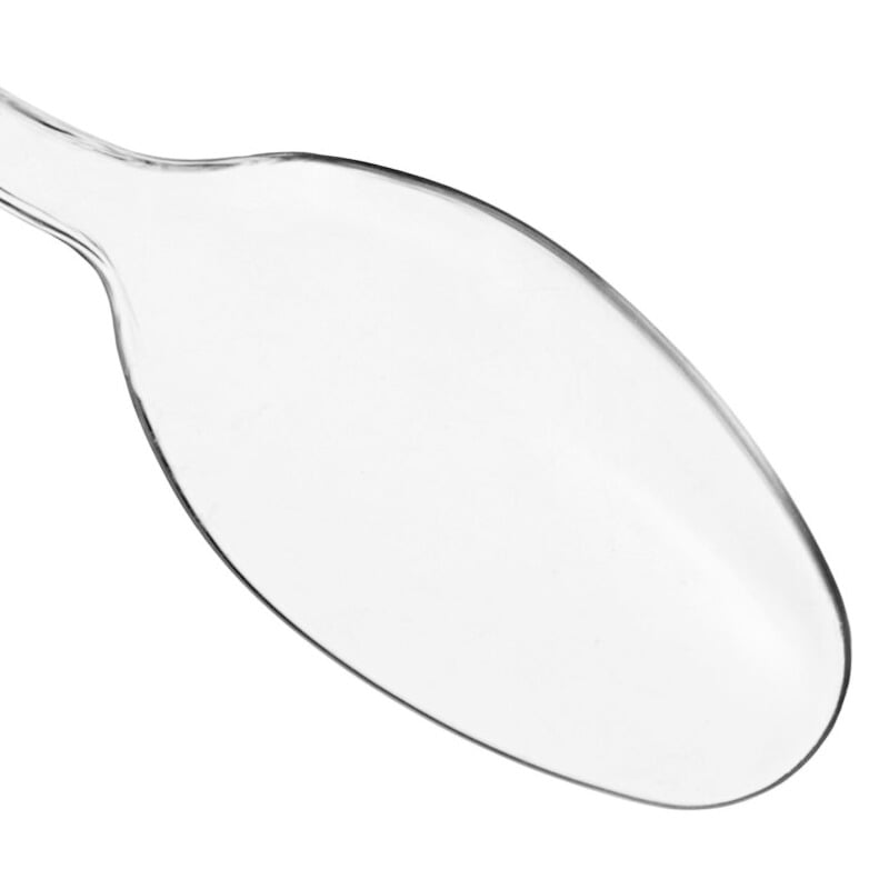 This spoon is perfect for your take-out restaurant, cookout, party, gathering, or other catering event. Use it to fill your flatware bins at your snack shack or concession stand or to complete your polystyrene plastic cutlery setting. The clear color is complementary to virtually any dining environment and can be dressed up or down according to the atmosphere of your event. This disposable teaspoon is extremely versatile and great for use with coffee or tea.