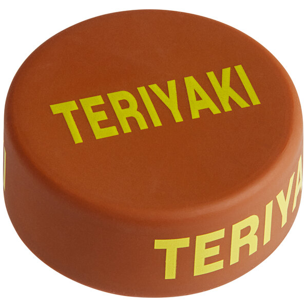 This Choice "Teriyaki" silicone first in first out style lid wrap is designed to help you quickly identify the contents of your squeeze bottles.