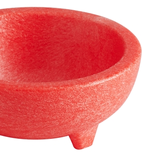 Featuring the shape of a traditional molcajete bowl with the convenience of plastic, this 2.5 oz. red bowl is both trendy and durable. Use it to serve customer favorites table-side for an unforgettable dining experience.