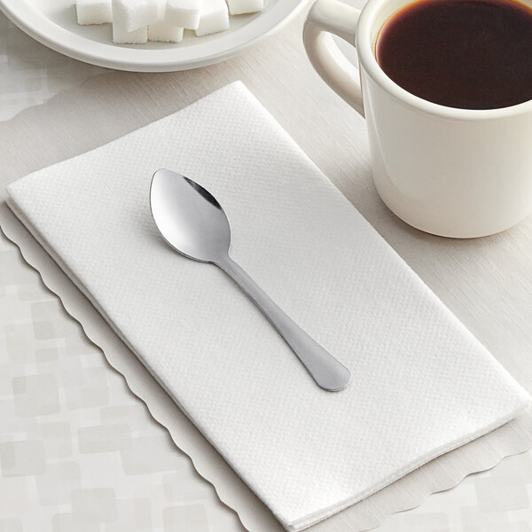 Give your guests sturdy, functional flatware with the Choice Windsor stainless steel medium weight demitasse spoon. Featuring a classic shape, this spoon has a simple appearance but is designed to perform well and hold up to everyday use. A highly economical choice for your establishment, its 18/0 construction is most at home in relaxed environments like pizza shops, cafeterias, bowling alleys, or burger restaurants. Serve this demitasse spoon with cups of coffee so guests can mix in their cream or sugar.