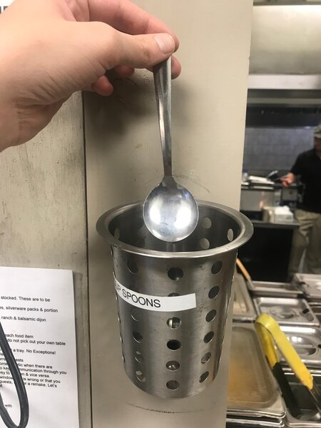The buillon spoon, or as we call it a soup spoon, is a great value. They do not bend or break easily and with a rinse and run thru the dishwasher are easy to clean and sanitize.