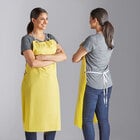 Stay dry and protect clothes with this Choice 40" x 26" yellow light weight vinyl dishwasher apron! This dishwasher apron is light weight, making it perfect for staying comfortable while moving around a bustling dish pit all shift long. The 8 mil vinyl construction means this apron is easy to wipe clean when necessary, so that it's ready for use whenever you need it. Plus, ties at the neck and on the sides allow this apron to be retied for a more customizable fit, making this product one size fits most.
