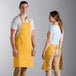 This vibrant, yellow dishwasher apron is lightweight, making it perfect for staying comfortable while moving around a bustling dish pit all shift long. Not only is this product is an economical choice, but it also lasts longer than disposable aprons.