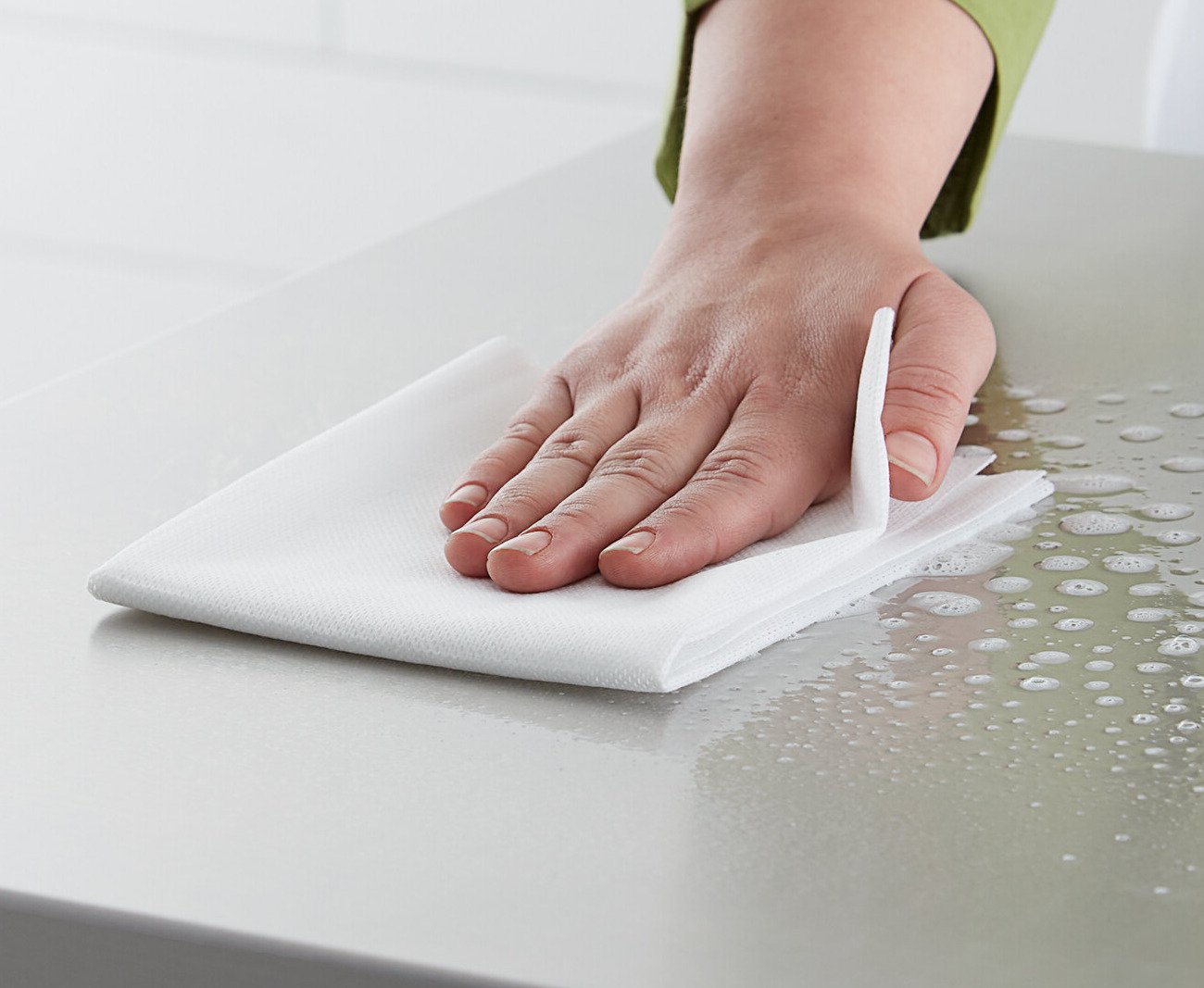 Easily sanitize surfaces and wipe away spills in your restaurant or bar. Perfect for use in front- or back-of-house operations, this wiper is ideal for cleaning, degreasing, and sanitizing surfaces. This antimicrobial foodservice wiper helps maintain a safe and sanitary environment for your customers and staff alike. It is a low lint wiper, so nothing is left behind on clean surfaces, and is compatible with a variety of cleaners.