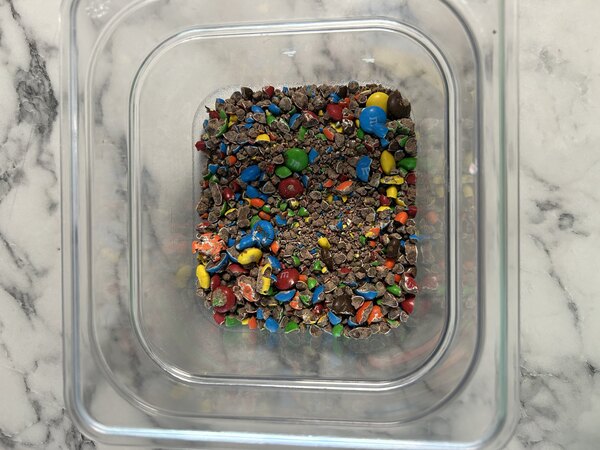 These chopped M&M pieces are great as an ice cream topping or (shh), even just to snack on. They're a decent size still, so may want to keep in mind depending what you plan to do with them.