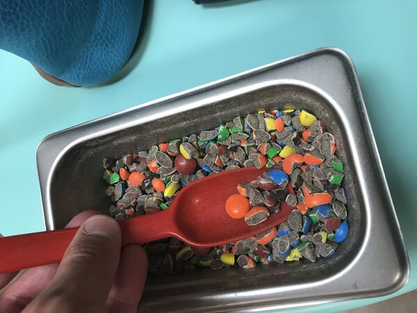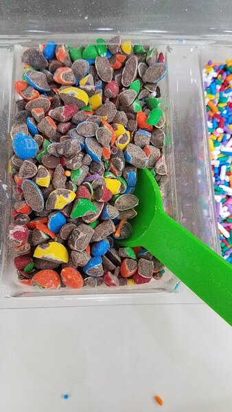 Loved the chopped M&Ms on cakes and sundaes! Adds color to all items! Packaging solid and no issues with melting in the hot months.