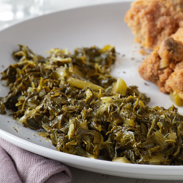Treat your customers to superior taste with these chopped mustard greens. Full of fresh flavors of traditional Southern cooking, these mustard greens bring natural and authentic foods to your table without the hassle of storing perishable produce. Offering the time-saving convenience of canned vegetables, these rich, chopped mustard greens are preserved in water to maintain their ideal texture and freshness and can be simply heated and served. Low in fat and calories, customers will love this versatile ingredient in many of their favorite dishes.