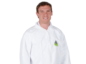 Made of an anti-static composite fabric, this lab coat is lighter and cooler than many other styles while still offering ample protection from varnish, resins, fiberglass, paints, and sanding dust. The tough composite fabric boasts a unique combination of breathable microporous film and soft non-woven polyolefin to create an effective barrier while still allowing for comfort. As an effective barrier, this lab coat features a collared neckline and snap-button front for extra protection, while the open wrists allow for easy application and removal. Use this coat wherever a high level of protection from contaminants is desired, such as with fertilizer, sewage, dust, dirt, or pesticides. Safe for food contact, this lab coat is also perfect for large food processing facilities.