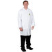 This lab coat's bright white coloring promotes a professional appearance.