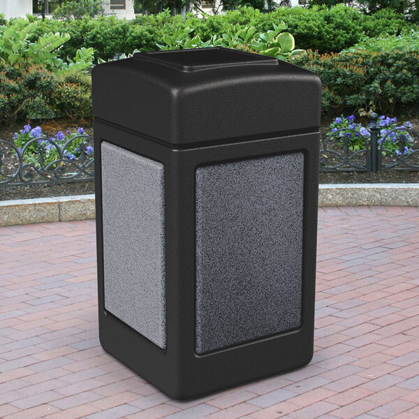 Commercial Zone 720313 StoneTec 42 Gallon Black Square Decorative Trash Can with Pepperstone Panels
