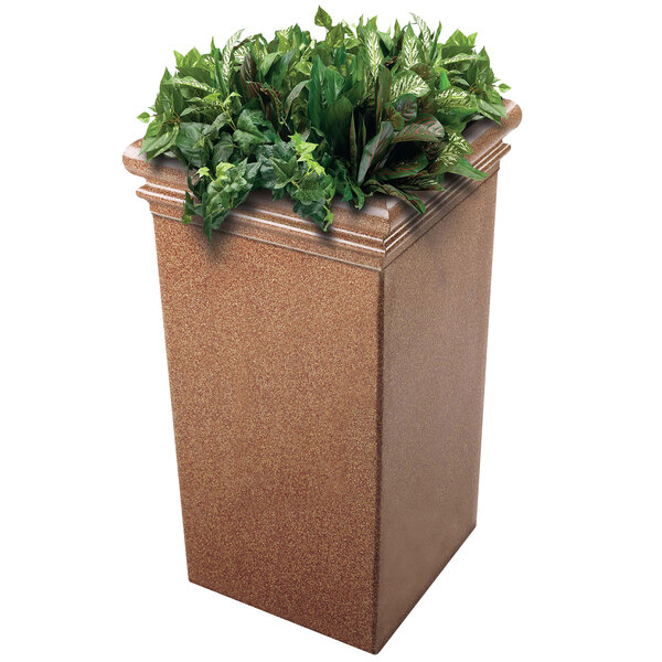 Display your colorful, lush flower arrangements while keeping your building protected with this Commercial Zone 724121 StoneTec 19" x 19" sedona tall planter! This piece is an attractive alternative to protective concrete barriers that can be placed outside your business's building, columns, or other structure. Constructed of fiberglass-reinforced polymer concrete, this contemporary sedona-colored planter is an extremely durable addition to your establishment and will withstand staining and discoloration.