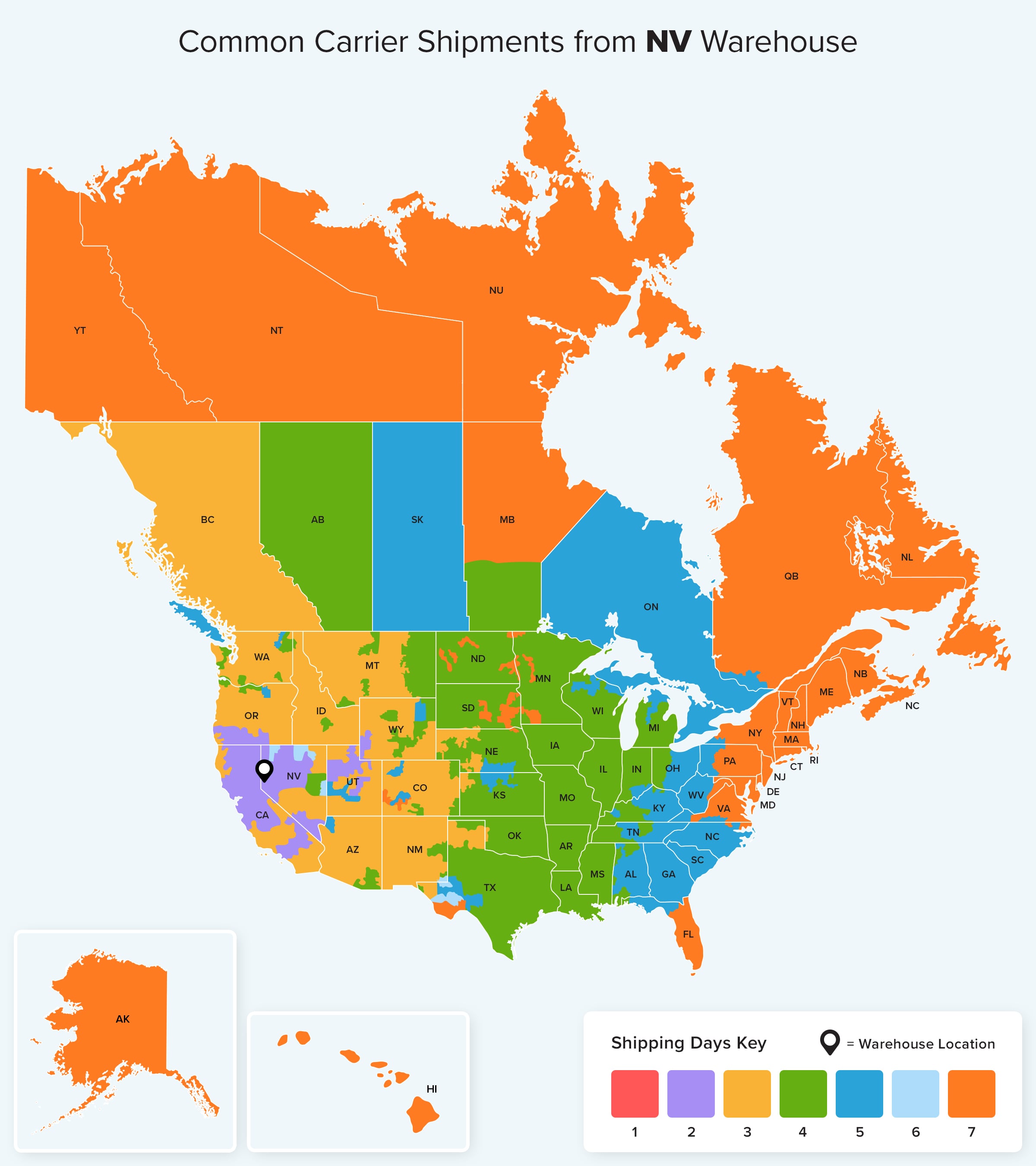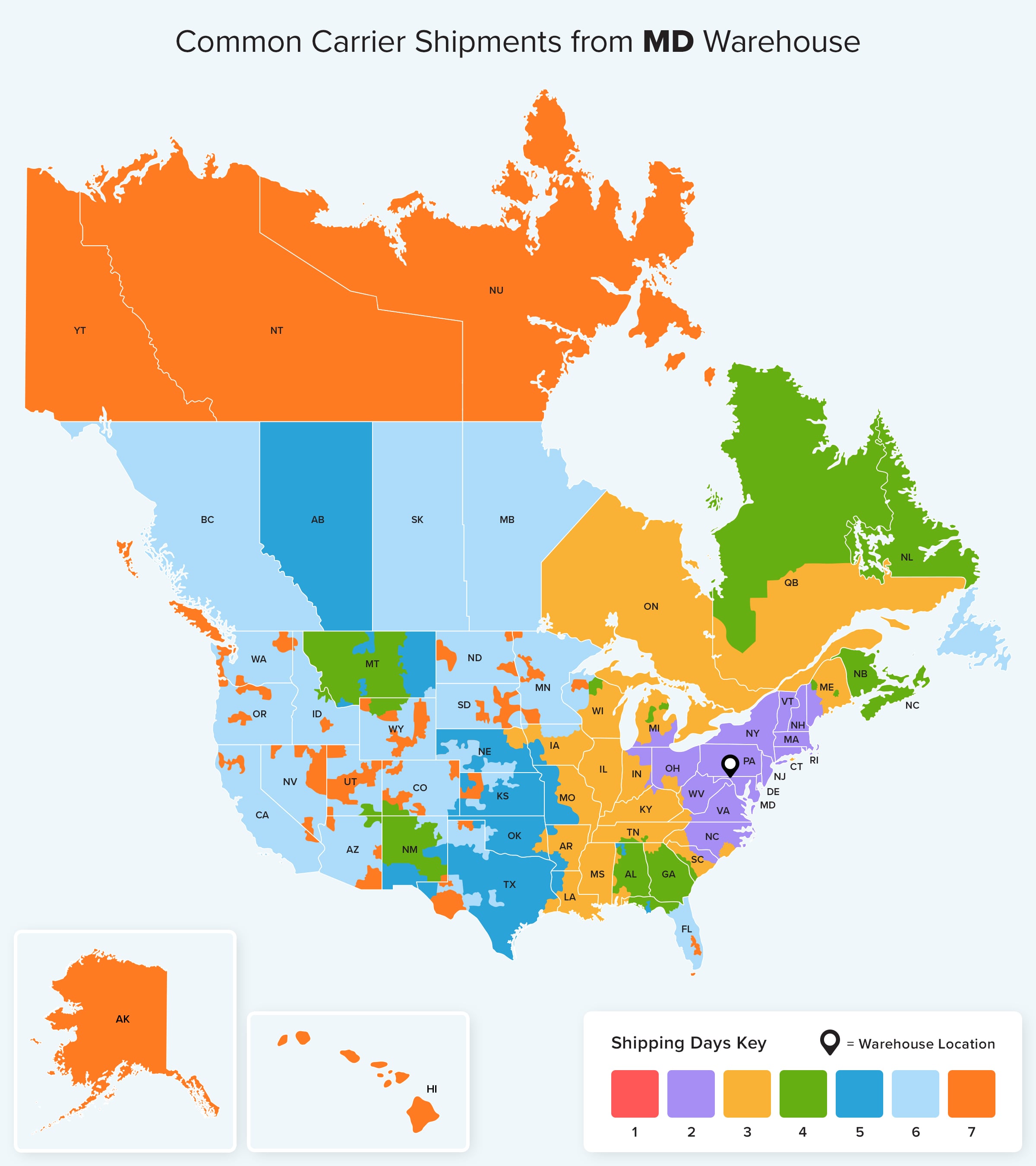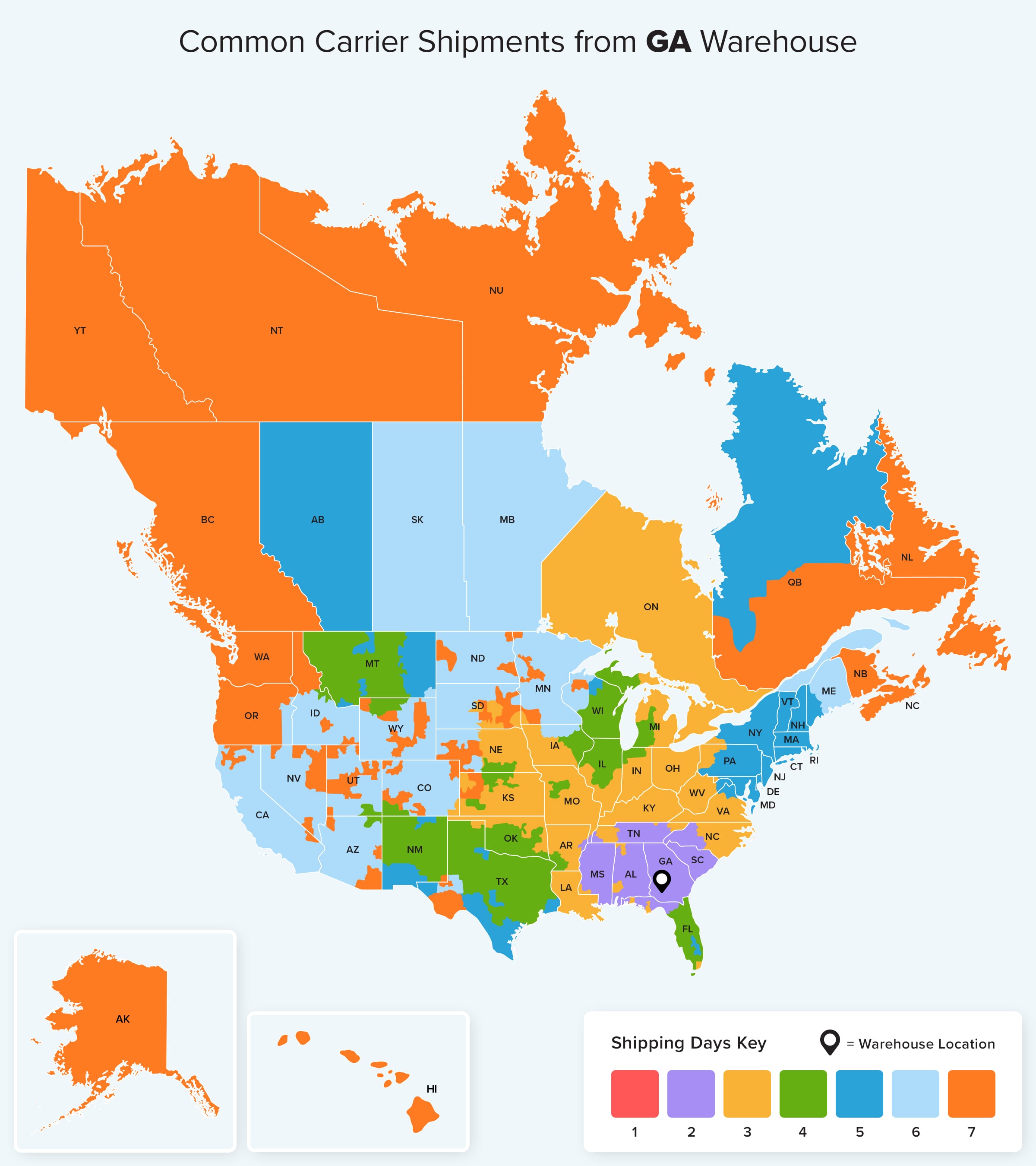 For more details about ground shipping from each of our warehouse locations check out Ground estimated shipping times for your area.