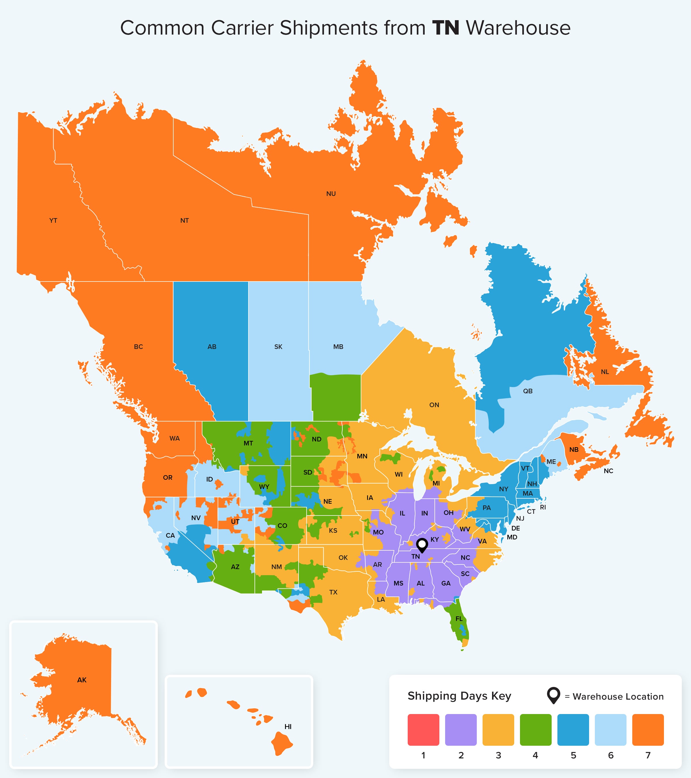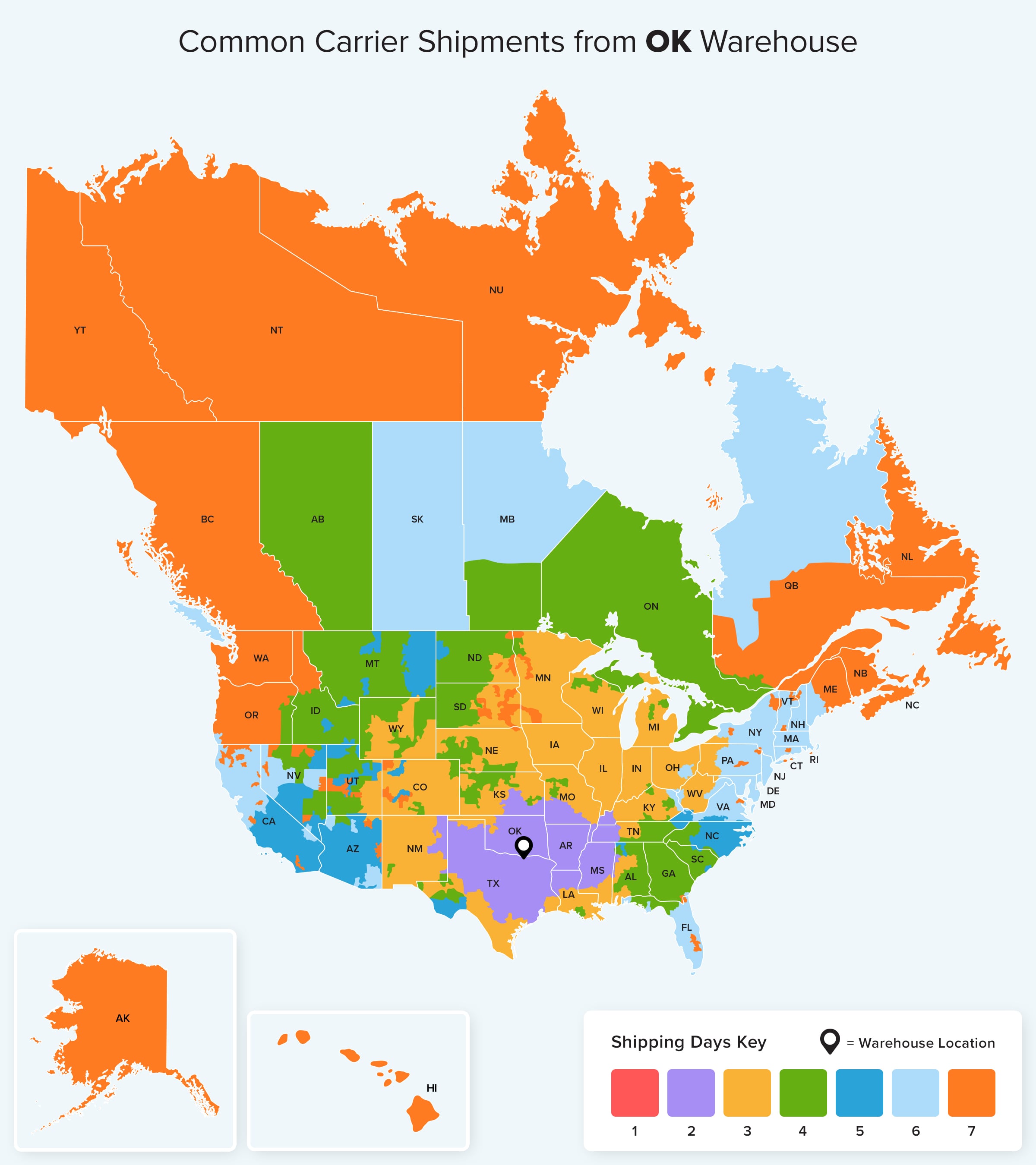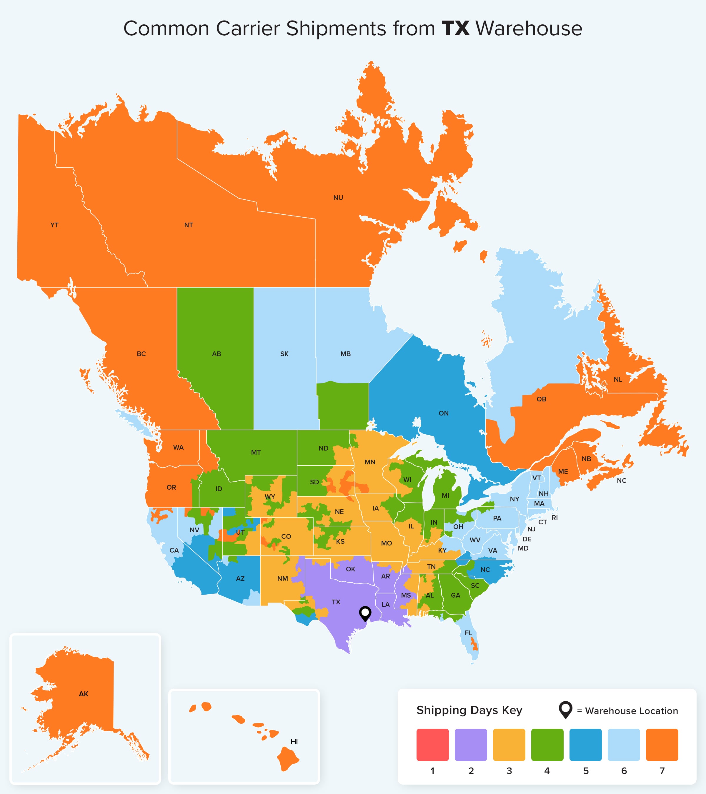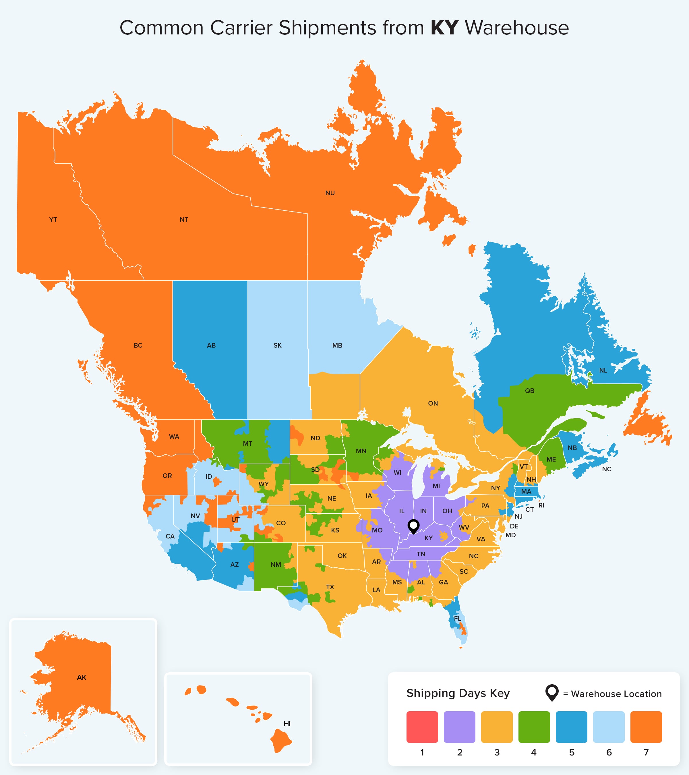 For more details about ground shipping from each of our warehouse locations check out Ground estimated shipping times for your area.