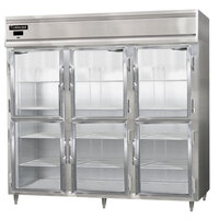 This Continental Refrigerator D3RENSSGDHD 86" glass half door extra wide reach-in refrigerator is perfect for your busy kitchen! This model features a stainless steel exterior and interior. This three section refrigerator also has six half size glass doors for easy access and visibility. Since you can see inside the unit without opening, you can keep more cold air inside and reduce wasted energy.