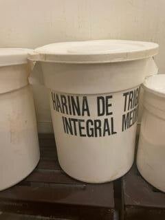 I use this bin for dry flour mix. The plastic is BPA free and food safe. The lid securely fits the top of the bin and protects from spills.